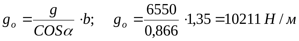 Расчетная нагрузка на 1 погонный метр косоура при номинальной ширине b=1,35 м равна: