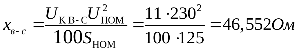 Для расчёта индуктивных сопротивлений используют напряжения короткого замыкания, приведенные в таблице 3.1 Суммарные реактивные сопротивления пар обмоток рассчитываются по формуле: