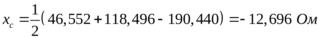 Поскольку индуктивное сопротивление хс получилось отрицательным, в дальнейшем при расчетах его примем равным нулю.
