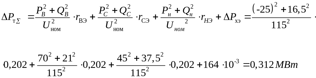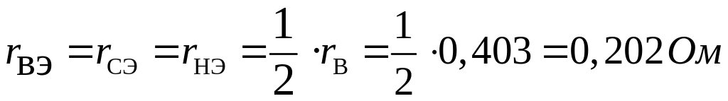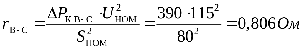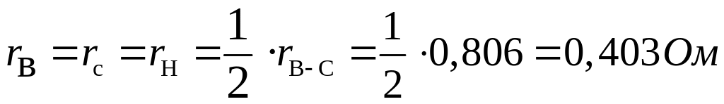 Обычно для современных трансформаторов при равных номинальных мощностях обмоток (100%/100%/100%,) задаётся одно значение потерь короткого замыкания – . Определим активные сопротивления: