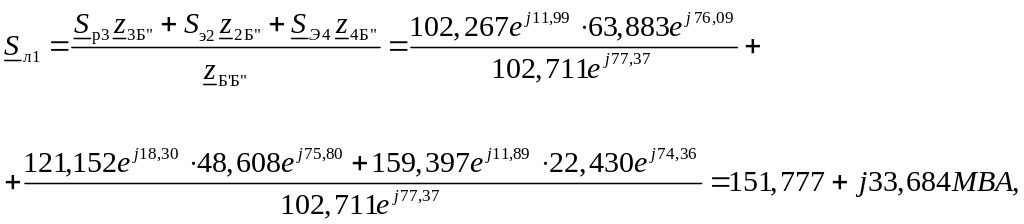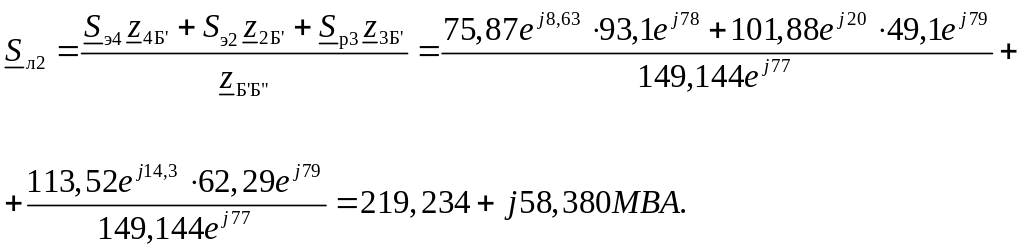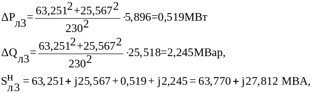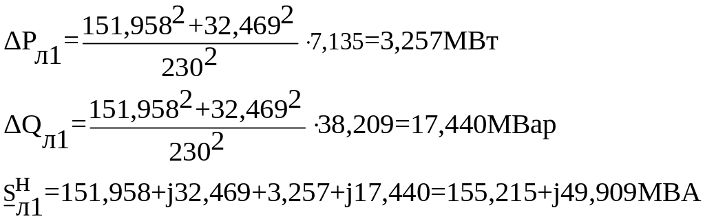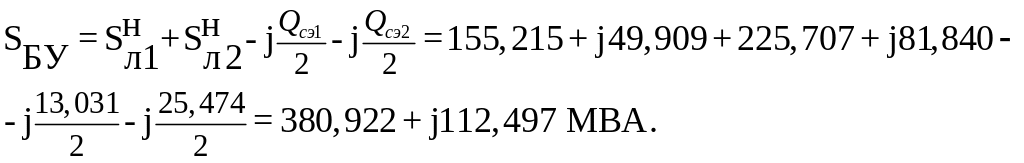 Найдем значения мощностей в точке потокораздела с учетом потерь в четвертой линии: