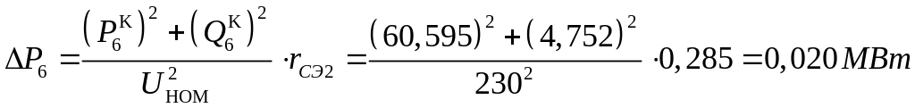 6.1.3 Расчёт потоков мощности на участке 6-5: