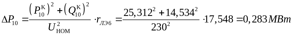 6.1.2 Расчёт потоков мощности на участке 6-10: