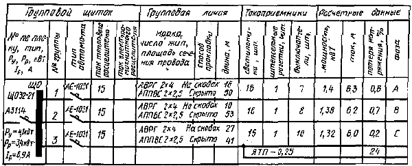Рисунок 7 Принципиальная монтажная схема для расчета осветительной электропроводки