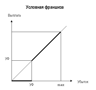 В соответствии с условиями страхования франшиза может быть условной (страховщик освобождается от возмещения убытка, если его размер не превышает размер франшизы, однако возмещает его полностью в случае, если размер убытка превышает размер франшизы) и