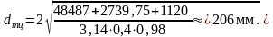 Определенный по формуле (2.2) диаметр тормозного цилиндра округляют до ближайшего к стандартному из следующего ряда: 203, 254, 305, 330, 356, 400 мм.