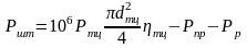 где Pшт — усилие, развиваемое на штоке ТЦ, кН;