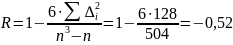Согласованность мнений экспертов оценим с помощью коэффициента ранговой корреляции: