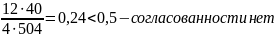Таким образом, мнения экспертов противоположны (знак минус) и практически не согласуются.