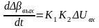 Увеличение угла поворота двигателя dΔβвых за бесконечно малый отрезок времени dt пропорционально изменению числа оборотов за этот отрезок времени: dΔβвых = K2 Δn dt, или d(Δβвых)/dt = K2Δn.