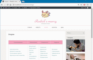 По аналогии со страницей госпитализации, представленной на рисунке 2.4.4, сделаны страницы поликлиника, специалисты, хирургия. Они так же имеют только ссылки на дочерние страницы.