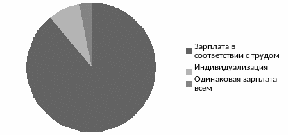 89% опрошенных заявили, что заработная плата должна быть пропорциональна количеству труда сотрудника, 8% выступили за индивидуализацию в зависимости от текущей ситуации и только 3% поддержали вариант с одинаковой зарплатой для всех (рис.4).