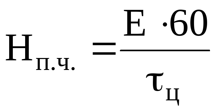 где Hп.ч. – часовая производительность камеры, кг/ч; E – единовременная емкость камеры; ц – продолжительность цикла, мин.