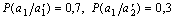 Вероятности: P(a1)=P(a2)=P=0.5 , условные вероятности равны отличны от нуля: