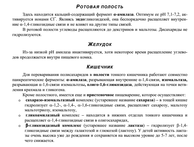 Ротовая полость. Здесь находится альфа-амилаза, углеводы расщепляются до декстринов, мальтозы. Дисахариды не гидролизуются.