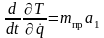 Полученная полная производная по времени дает левую часть уравнения Лагранжа.