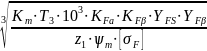 где T1 ‒ момент на шестерне открытой передачи, Н·м; Km ‒ коэффициент, учитывающий тип передачи: Km = 2 ‒ для косозубых, Km = 3 ‒ для прямозубых колес. Из двух отношений [σF]1/YFS1 и [σF]2/YFS2 выбирается минимальное [σF]/YFS, его составляющие подставляются в формулу для вычисления модуля. При этом допускаемые напряжения подставляются в мегапаскалях (МПа).