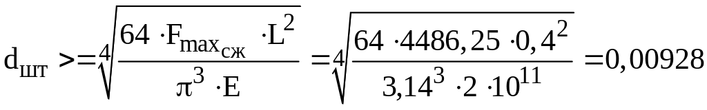Принимаем длину штока из конструктивных соображений L=400 мм и определяем его диаметр, исходя из расчета стержня на устойчивость под действием сжимающей силы: