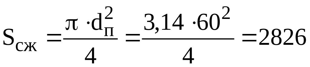 Площадь поршня на ходе сжатия: