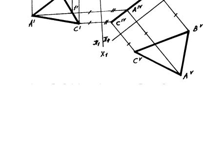 раллельной горизонтальной плоскости проекции, его горизонтальная проекция А/В/С/ по величине не изменяется, а фронтальные проекции точек перемещаются по линиям, параллельным оси Х (рис. 7).