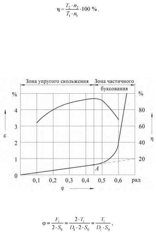 менных перегрузках, например, при пуске. В этой зоне КПД резко снижается за счет увеличения потерь на скольжение ремня, а ремень быстро изнашивается. Величина зоны частичного буксования характеризует способность передачи воспринимать кратковременные перегрузки.