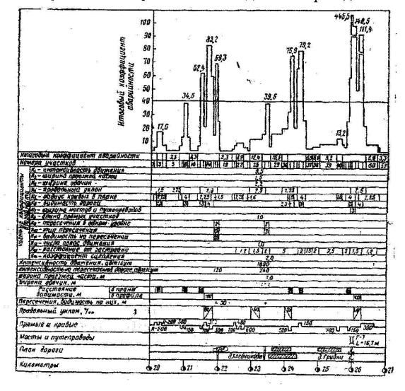 Эпюра итоговых коэффициентов аварийности с учетом тяжести дорожнотранспортных происшествий может показать значительное изменение степени опасности отдельных участков.