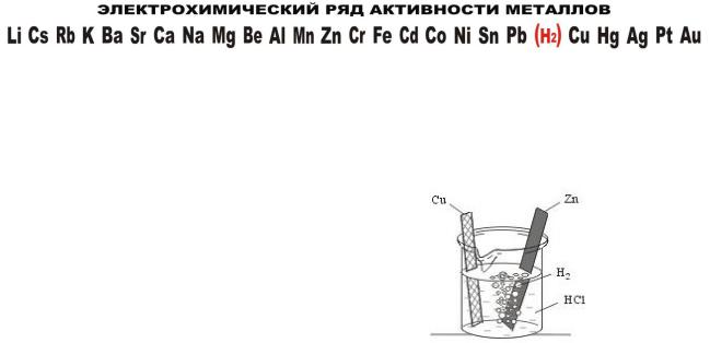 Все кислоты (кроме азотной и концентрированной серной!) реагируют с металлами, стоящими в ряду активности до водорода, при этом из растворов кислот вытесняется газообразный водород. Окислителем является катион Н+.