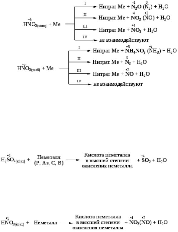 Схемы процессов взаимодействия азотной кислоты с металлами (Ме) можно представить следующим образом