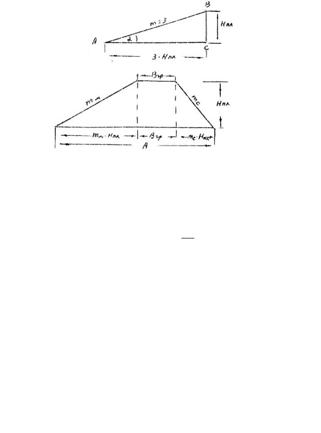 Крутизна откосов характеризуется так называемым коэффициентом заложения откоса m, который показывает, во сколько горизонтальная