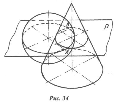 На рис. 34 показано нахождение общих точек для поверхностей сферы