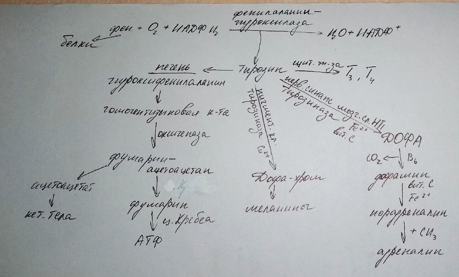 51. Метаболизм отдельных аминокислот: фенилаланин и тирозин. Нарушение метаболизма аминокислот