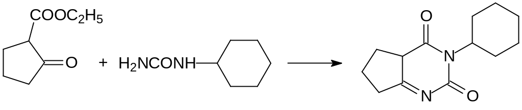Продолжается выпуск Ленацила (3-циклогексил-1,5,6,7-тетрагидро-циклопентапиримидин-2,4(3H)-дион). Его получают из циклогексилмочевины и этилового эфира циклопентанон-2-карбоновой кислоты, образующегося при циклизации диэтиладипината по реакции Дикмана: