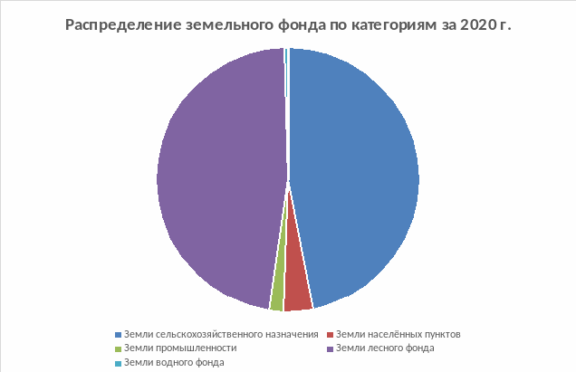 Рисунок 8 – Распределение земельного фонда по категориям за 2020 г.