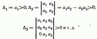 Следовательно, условия отрицательности действительных частей корней характеристического уравнения выражают следующим образом: