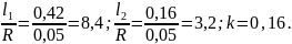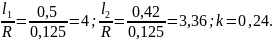 Трубопровод 3 коленообразный, поэтому необходимо определить отношение длин каждого из трубопровода колен на соответствующий радиус: