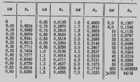 Таблица 3.4 - Значения коэффициента Клаузинга k в зависимости от соотношения l/d