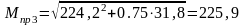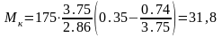 Расчетный изгибающий момент М2, кН·м, действующий в сечении 2 баллера у нижнего подшипника равен:
