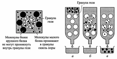 с высокой скоростью. Средние и небольшие белки будут в той или иной степени удерживаться гранулами геля.