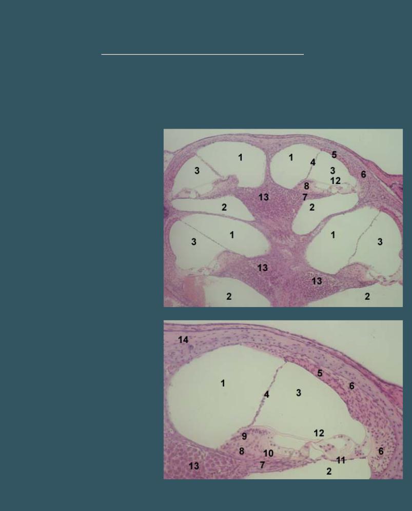 9 - вестибулярная поверхность (губа) лимба 10 - барабанная поверхность (губа) лимба