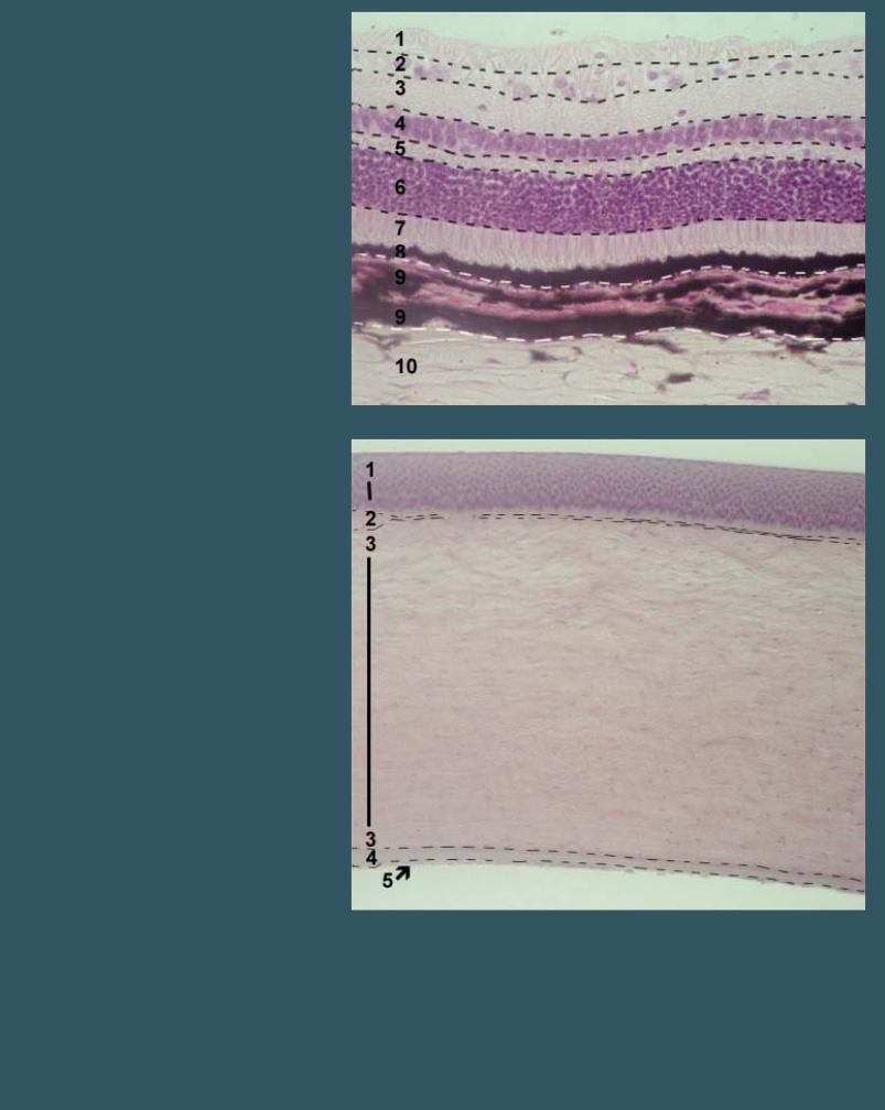 4 - задняя пограничная (Десцеметова) мембрана 5 - задний эпителий (однослойный плоский)