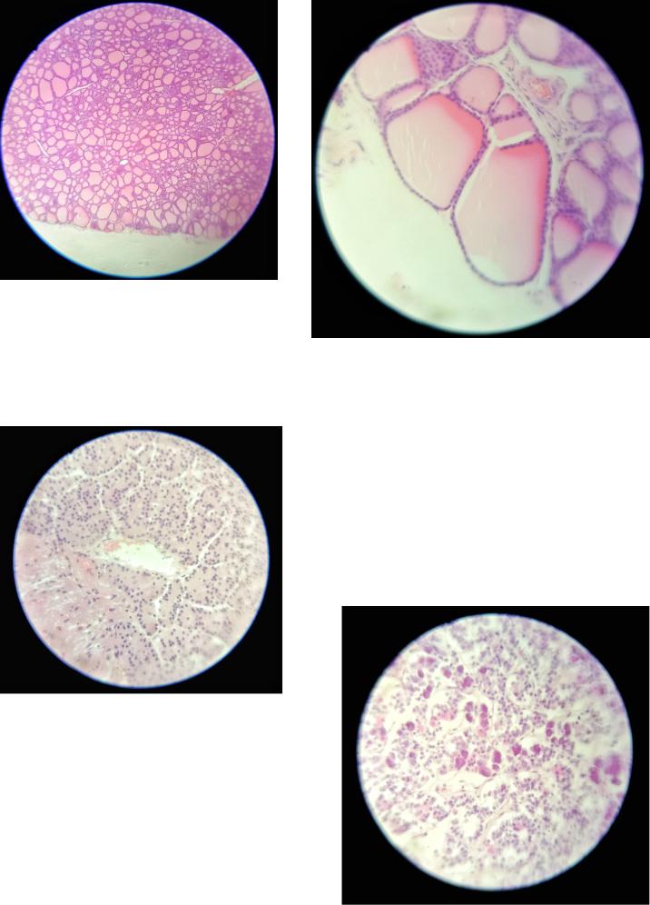 группы хромофильных эндокриноцитов, окрашенных в красный или фиолетовый цвет, и хромофобные клетки с неокрашенной цитоплазмой