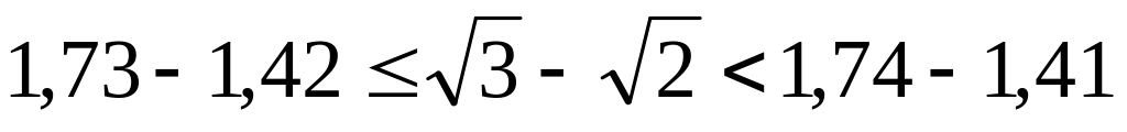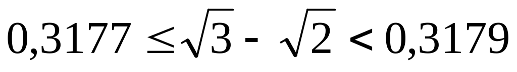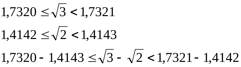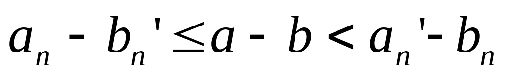 – из приближенного значения по недостатку уменьшаемого вычесть приближенное значение по избытку вычитаемого, записать результат как приближенное значение по недостатку разности;