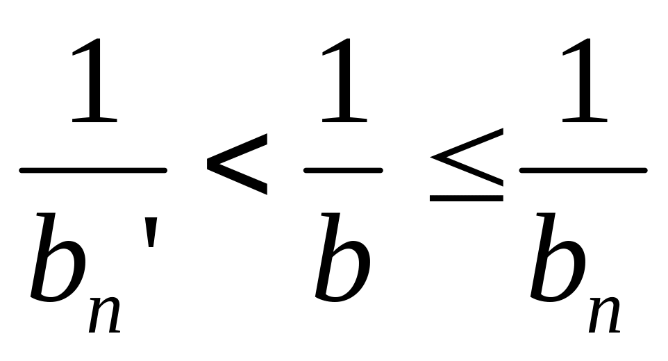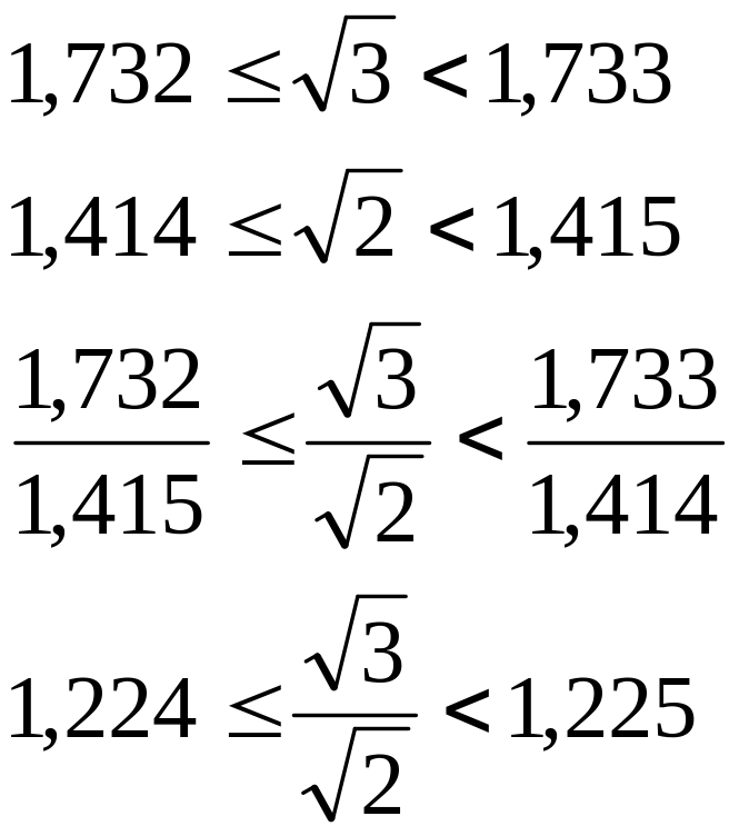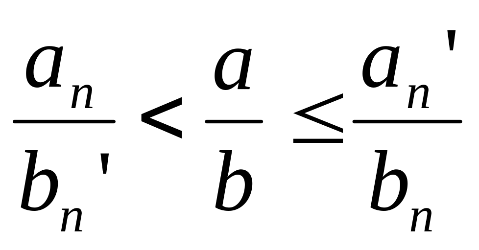 – приближенное значение по недостатку числа а разделить на приближенное значение по избытку числа b и записать как результат частного по недостатку;