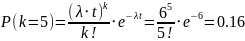 На АТС поступает простейший поток вызовов с интенсивностью вызова в минуту. Найти вероятность того, что за время минуты: а) не придёт ни одного вызова; б) придёт ровно 5 вызовов; в) придёт менее 5 вызвов; г) придёт чётное число вызовов.