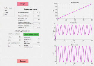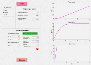 Для моделирования движения различных кораблей в среде MatLab было разработано приложение с графическим интерфейсом, скриншот которого представлен на рисунке 6.