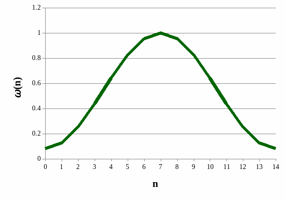 Воспользуемся полученными значениями из табл. 4 и рассчитаем результат применения весовых окон. Полученные значения представлены в табл. 5.