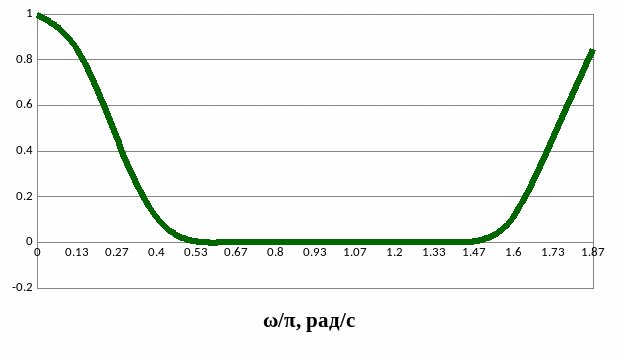 Рис. 11. АЧХ фильтра с применением окна Ганна
