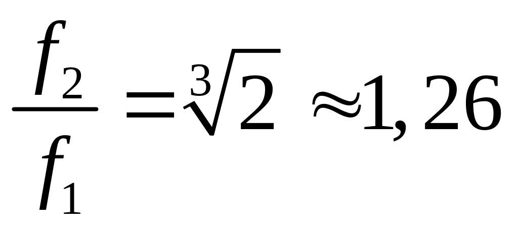 Октавой называют полосу частот, в которой отношение верхней ƒ2 и нижней ƒ1 граничных частот равно 2, т.е.
