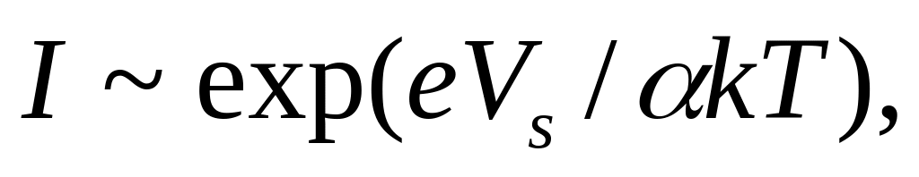 где 1 < α < 2. В действительности график lnI в зависимости от V может оказаться не прямой, а извилистой линией, средний тангенс угла наклона которой соответствует e/α kT.