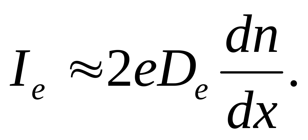 Рассмотрим, например, материал n-типа при низком уровне инжекции, так что всюду п>>р. Электронный дрейфовый ток здесь намного больше, чем дырочный дрейфовый ток, в то время как диффузионные токи одинаковы (нo противоположного знака), поскольку De и Dh примерно равны. Поле Е зависит от величины электронного тока, которая в свою очередь зависит от граничных условий. Например, в сильно асимметричных легированных р+ − n-переходах электронный ток в р+-область незначителен по сравнению с дырочным током в n-область (заданные концентрации вне перехода несколько неодинаковы). В этом случае дрейфовая компонента Iе почти точно компенсирует диффузионную.
